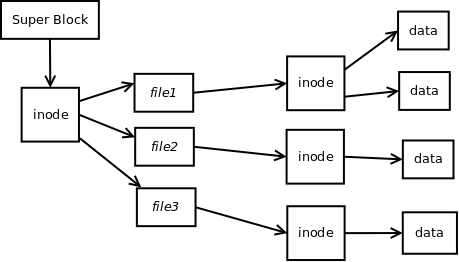 Borrowing from the MINIX file system, PICFS consists of a linked list of blocks, called inodes, which contain data about the file and pointers to blocks containing the file data. The first block of each image contains information about the file system as well as a pointer to the top most directory. This block is referred to as the super block. Directories themselves are treated exactly like files, where the file name and a pointer to the first block is the data for this directory 'file'.